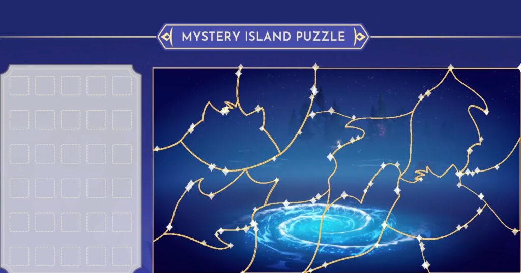 Apportez les bijoux à Moana et un orbe apparaîtra. Interagissez avec l’orbe pour accéder au puzzle de l’Île Mystère. Pour résoudre le puzzle, vous devez relier toutes les pièces comme un puzzle. Faites glisser les pièces depuis la gauche et faites-les pivoter pour voir où elles s’adaptent. Je suggère de commencer par remplir les bordures pour faciliter le remplissage du centre.